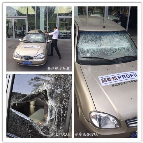 普非珑PROFILON车商务安防膜能有效的阻挡外界的安全威胁,包括:人为因素,如石块或其他坚硬物质的意外袭击;恶劣天气所引发的飓风、地震、龙卷风、强风暴对汽车的伤害;物体的掉落、飞溅、爆炸、枪击、(特定条件)偷盗抢劫、玻璃自爆等。