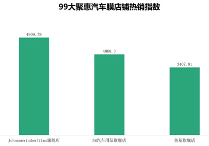 和线下鱼龙混杂、真假膜参杂的销售状况极为不同的是,线上大品牌汽车膜销量占据绝对优势,品牌的力量在电商上得到了最大的体现。其中强生(johnsonwindowfilms)官方旗舰店热销指数为4909.79排名第一。龙膜、威固、雷朋等知名品牌旗舰店发力不够,未能进入前三甲。