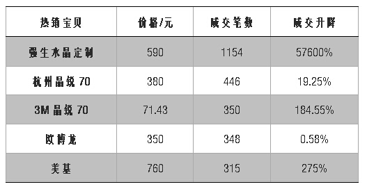 此次聚划算天猫旗舰店最畅销产品冠军是强生天猫定制款“3小时快干水晶系”,以1154笔遥遥领先。比较有意思的是,排名第二和第三都是3M晶锐70,来自不同店铺, 3M的销售战略可见一斑。欧博龙和美基分别位于第四第五,可以看到4家加起来的成交笔数都未能超过排在第一名的强生,数据十分漂亮。