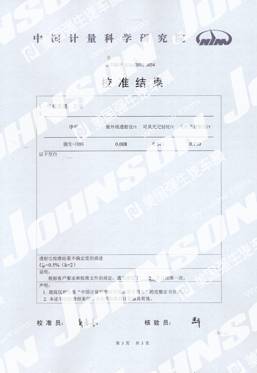 《美国强生汽车膜2015检测报告》原件可在美国强生膜官网上查询:http://www.johnsonfilms.com