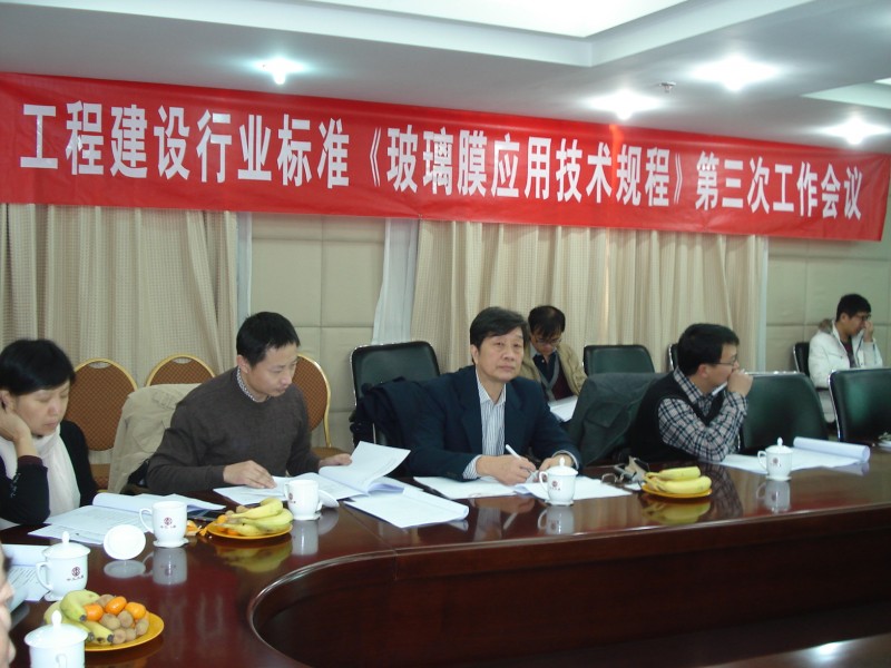 2013年11月22日,由中国建筑科学研究院负责编制的工程建设行业标准《玻璃膜应用技术规程》第三次工作会议在北京中工大厦召开,来自全国各地专家和企业代表共计27人参加了会议。中国建筑科学研究院物理所王洪涛主任到会并做了总结性发言。中国建筑玻璃与工业玻璃协会窗膜与涂膜专业委员会陈小军参加了会议。